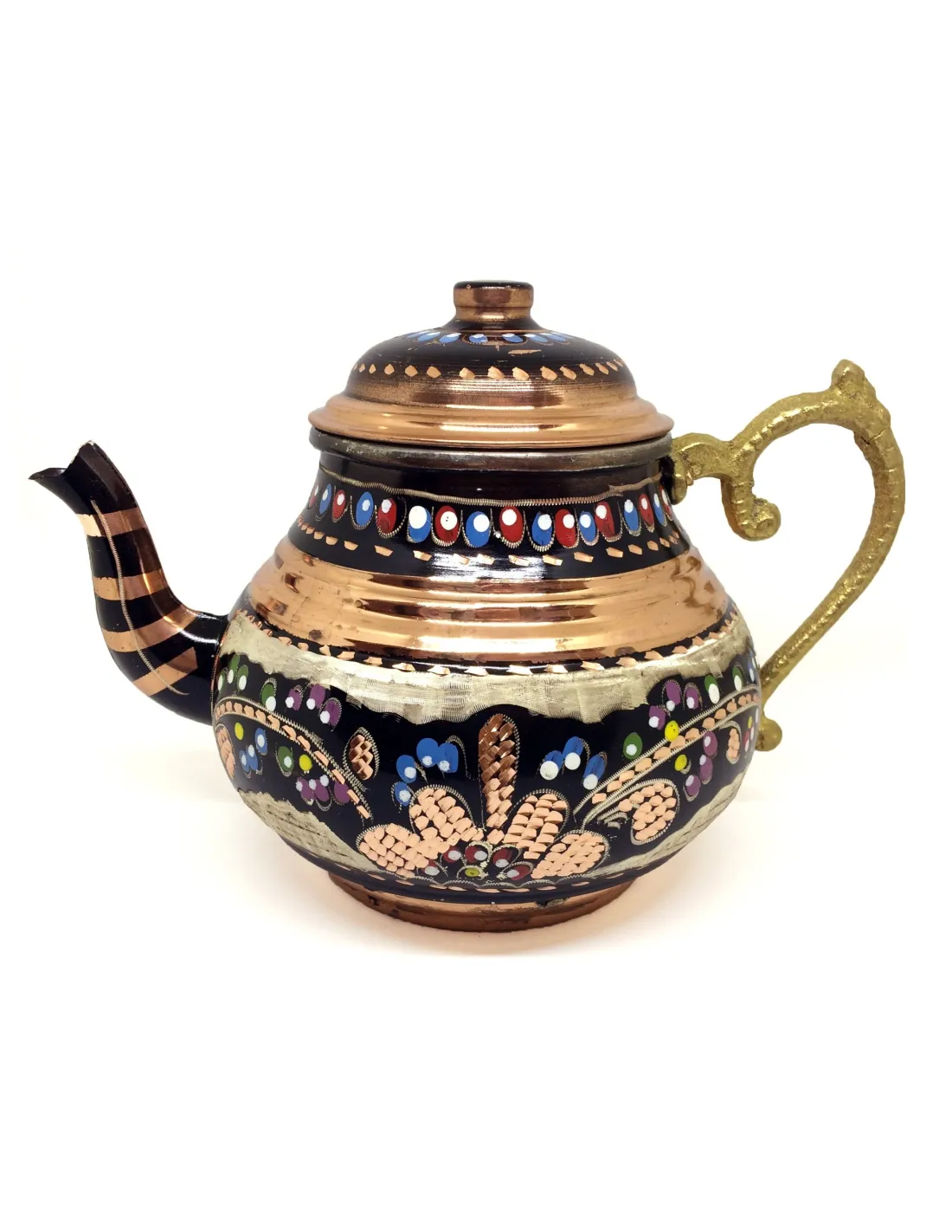 Handmade and decorated copper teapot straight from the Turkish countryside. The teapot is hammered using a traditional artisanal method.