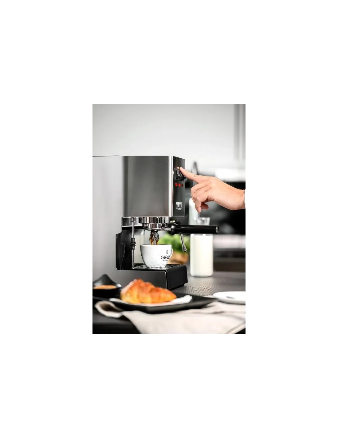 Gaggia Classic Classic EVO in a new design for everyone who wants to enjoy a perfect Italian espresso in the comfort of their home. The coffee maker is made in Italy , thus guaranteeing top quality, expertise and reliability.