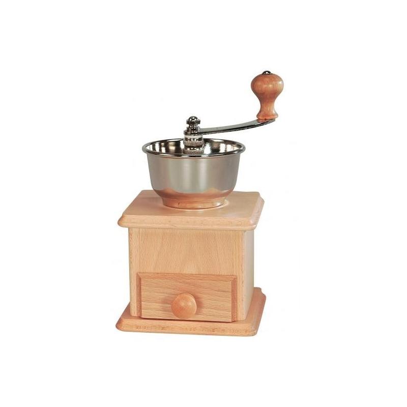 TheLodos grinder in the 1932 series is the exact embodiment of your idea of a traditional coffee grinder. These beechwood mills are largely handmade, so each piece is a little different. The wood is hand-painted and stained to the appropriate shade if necessary. The inner workings are then nickel-plated and the grinding stones are made of hardened steel. The entire grinding system is guaranteed for 10 years.