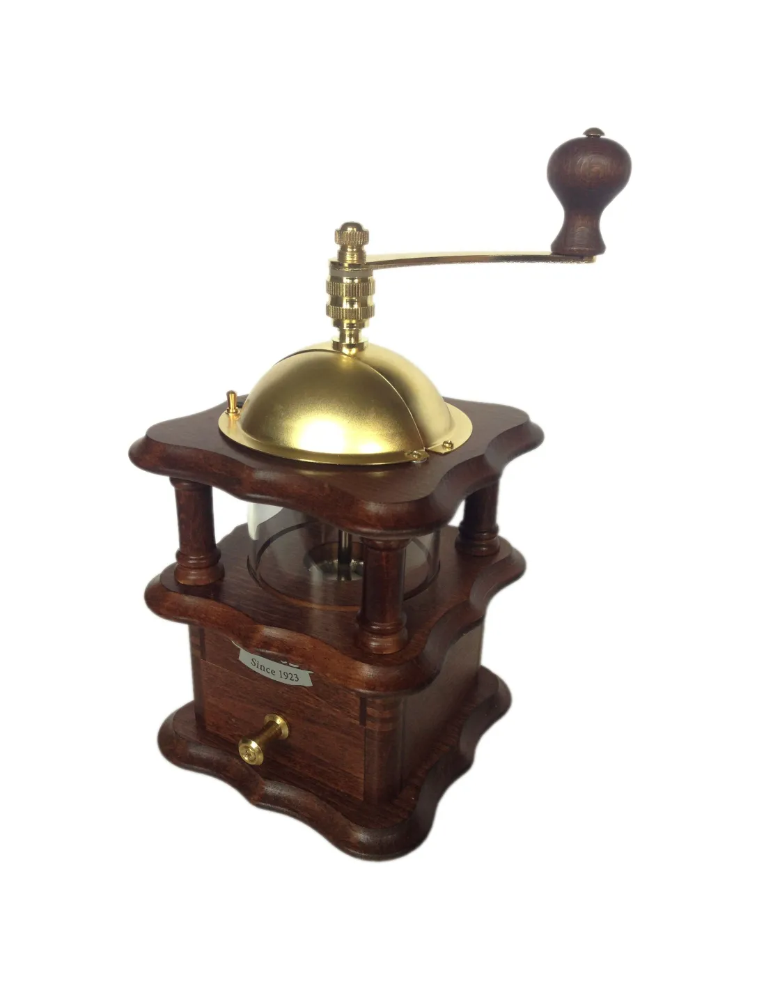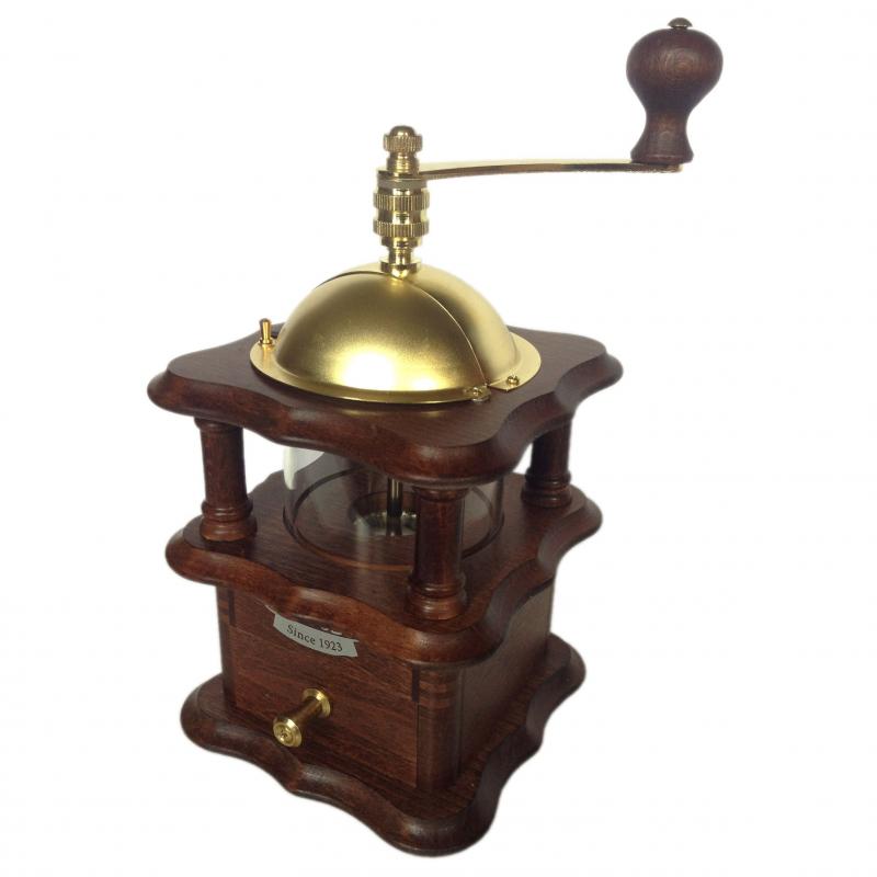 Lodos Nostalgiecoffee grinder made of dark beech wood, with an interesting coffee window and a 10-year warranty from the traditional Czech company Lodos.