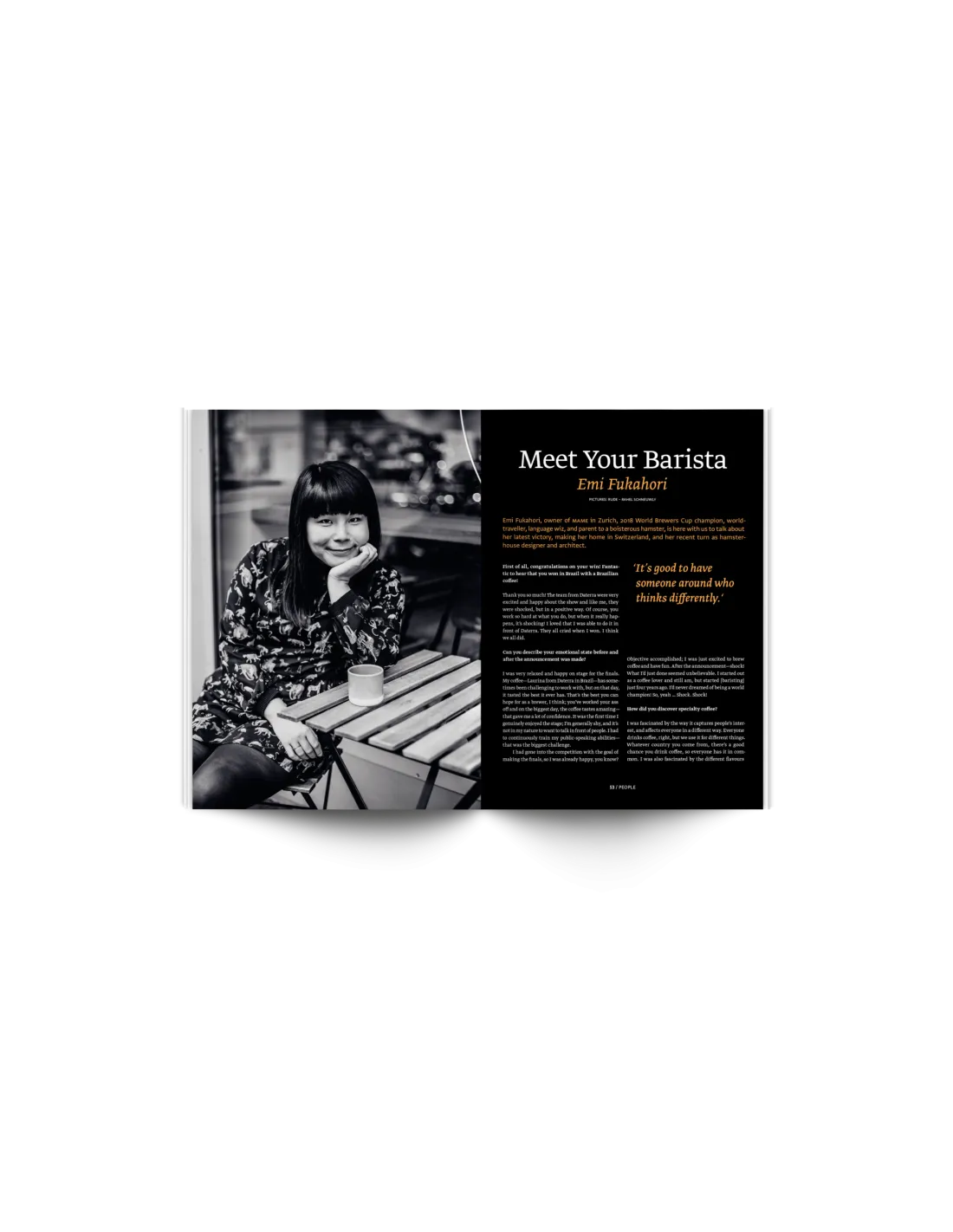 Chapter PEOPLE is a creative space, contains i an interview with the World Brew Championers Cup 2018, Emi Fukahori. Jenn Chen brings you an essay on the connections between employment and coffeecoffee addictioní, and there will be a short story from Brazil - about a terrifying day in the life of a professional taster coffee tasterwho gradually losing his taste.