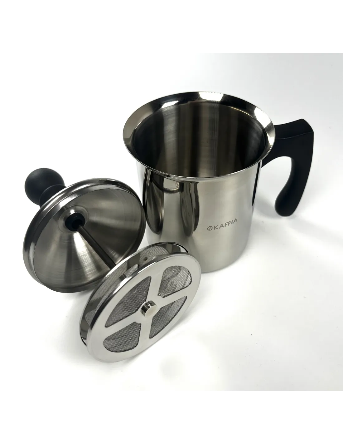 The Kaffia Frother is made of stainless steel. You can easily create froth even from cold milk The piston used to froth the milk is double-ended, so you will get better results than with other frothers.