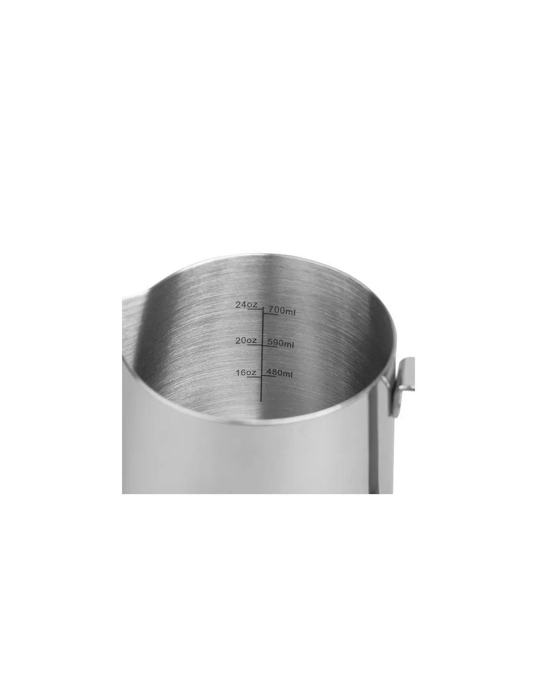 The Rhinowares milk jug is made from high quality 1mm thick food grade stainless steel and the handle is specially ergonomically designed for busy barista hands.