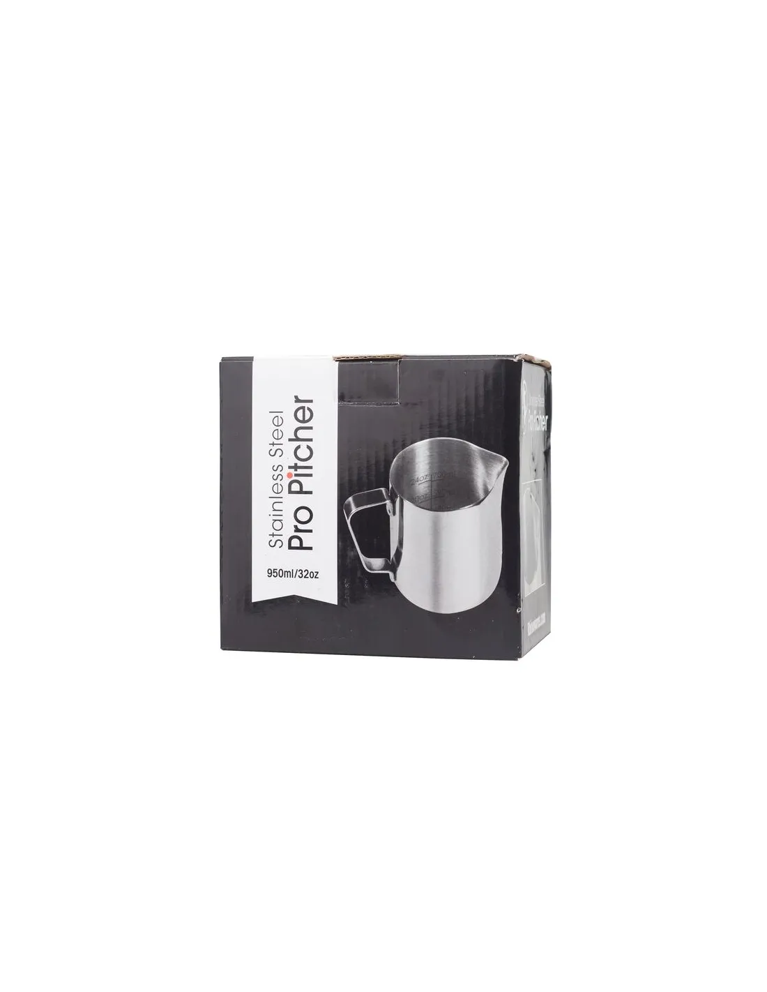Rhinowares professional milk jug made of 1mm thick stainless steel with a capacity of 950 ml.