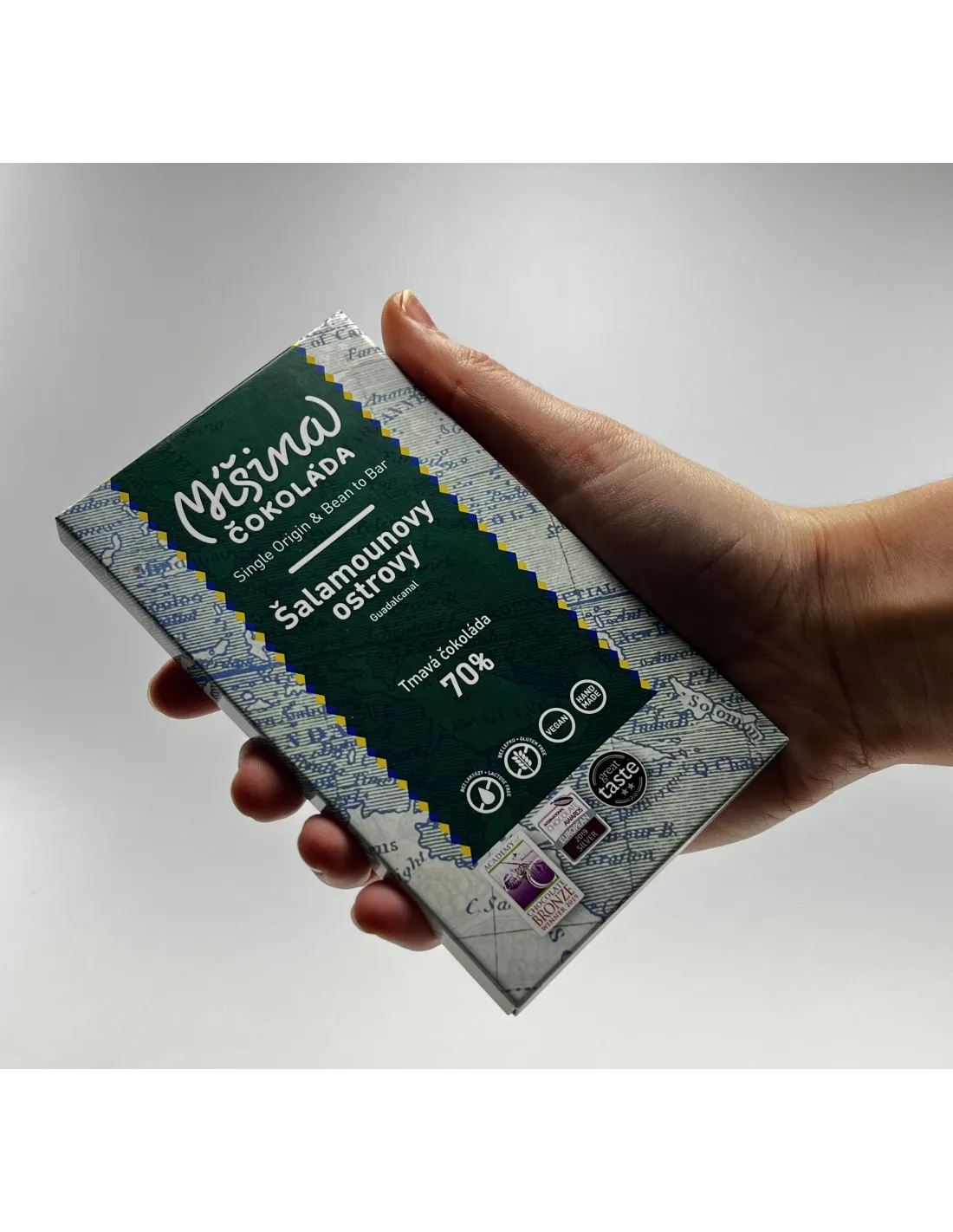 Dark chocolate made from select cocoa beans from the distant Solomon Islands. You will find notes of olives, honey and tobacco.