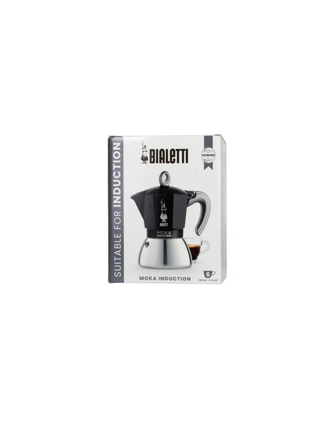 Thelegendary eight-walled Bialetti moka pot can now also be enjoyed by owners of induction hobs thanks to its stainless steel base. Size: 6 cups: approx. 280ml.
