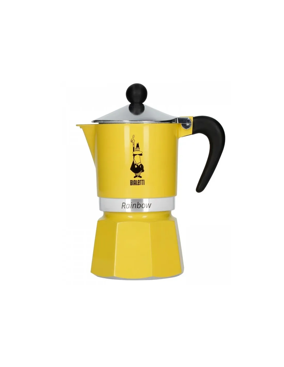 Stylish aluminium moka pot Bialetti Rainbow from Italian company Bialetti for traditional preparation of stronger coffee. Suitable for 3 cups. Capacity: approx. 130ml.