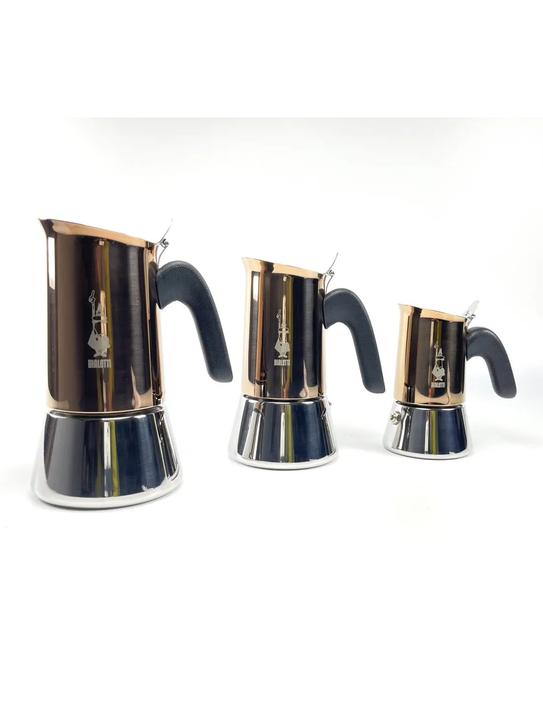 All-stainless luxury mocha pot Bialetti Venus Copper from Italian company Bialetti for traditional preparation of 4 cups of stronger coffee (approx. 170ml). Suitable for induction hobs too!