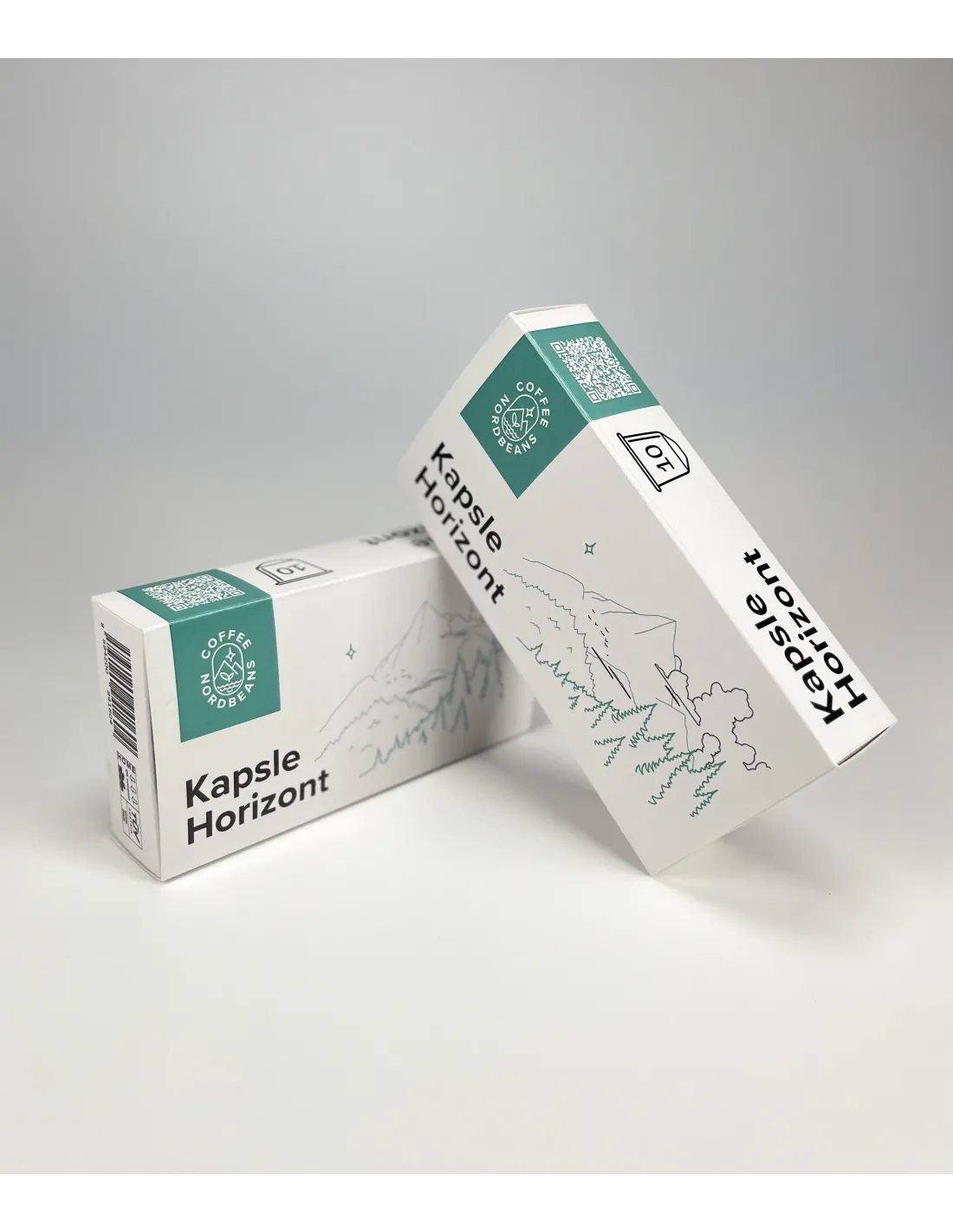 HORIZONT coffee in the form of Nespresso® capsules that not only taste great, but are also compostable. Taste: Chocolate- Nuts - Ripe fruit