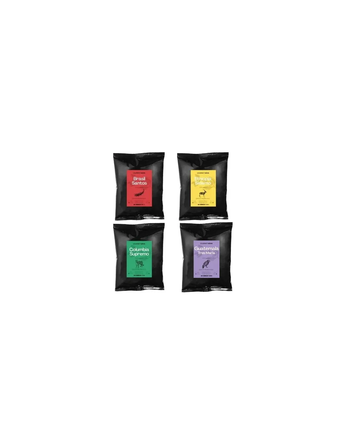 These 4 coffees are an ideal cross-section of our coffees, starting with the finest Brazil Santosto the perfectly balanced Guatemala Trés Maria a Colombia Supremo, to the pleasantly fruity coffee Ethiopia Sidamo.