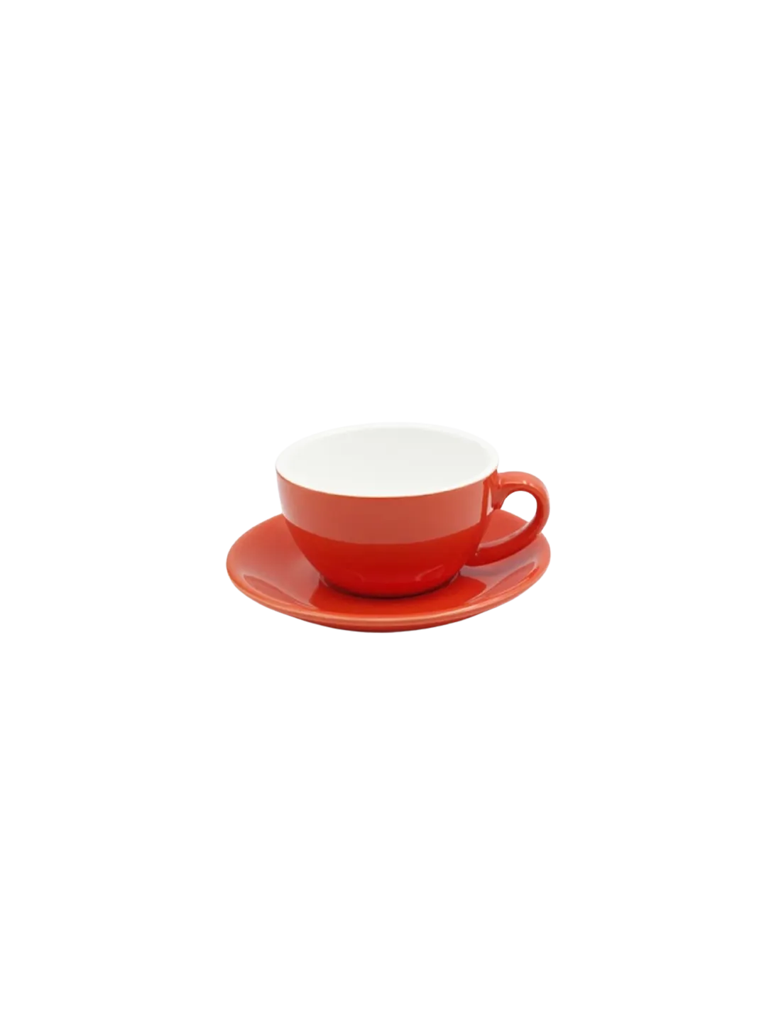 Porcelain cappuccino cup with a volume of 200 ml . It also includes a saucer . Color: orange .