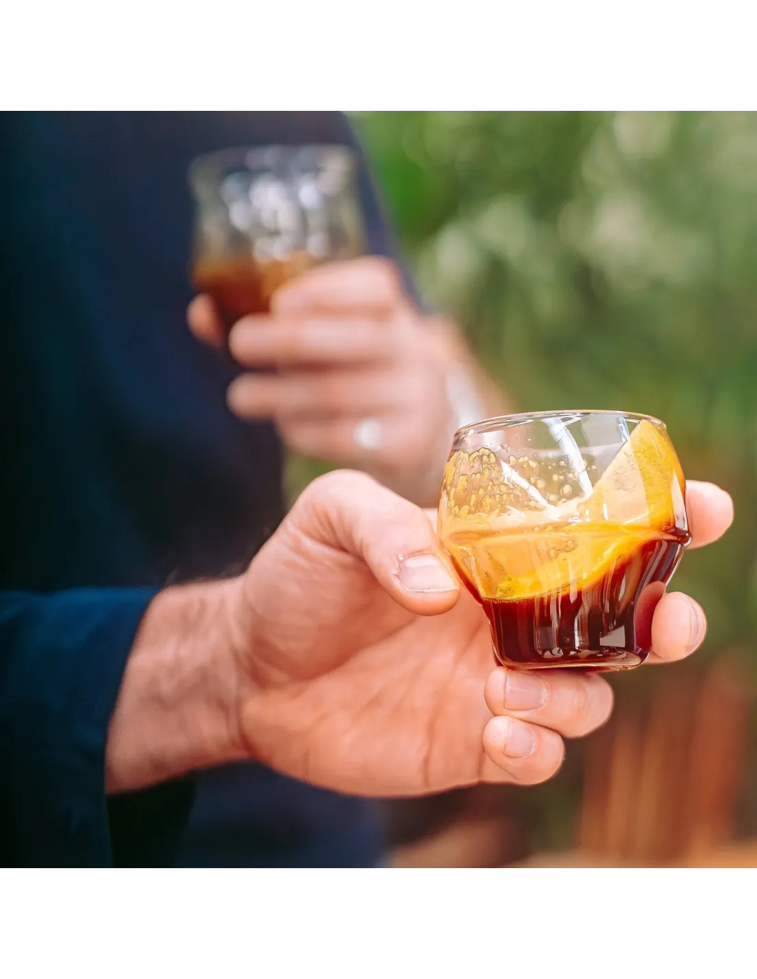 Inspired by the iconic Senti glass,the AERESSO espresso cup' s elegant arched shape perfectly captures the rich aroma of espresso, subtly enhancing its sweetness and bringing you an unforgettable experience with every sip. Thanks to its thoughtful design, you'll enjoy your espresso to the fullest without the need for stirring.