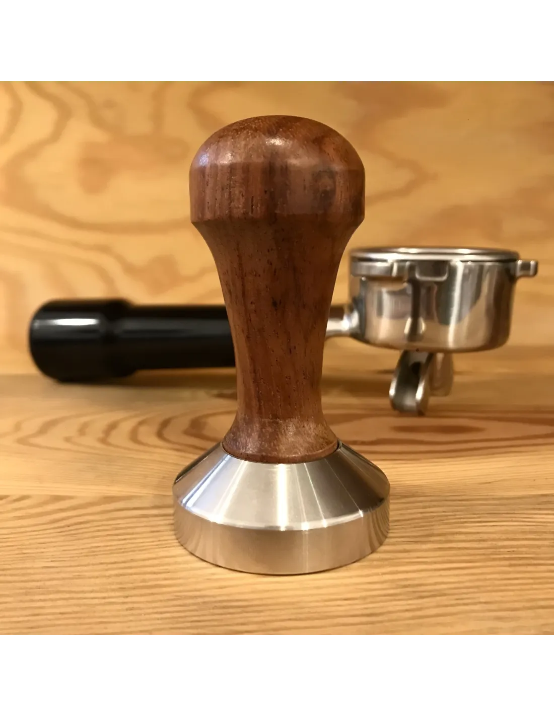 Professional coffee tamper with stainless steel base and wooden handle. Diameter: 49mm