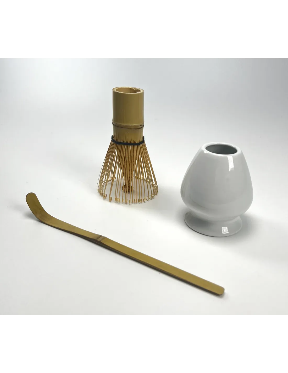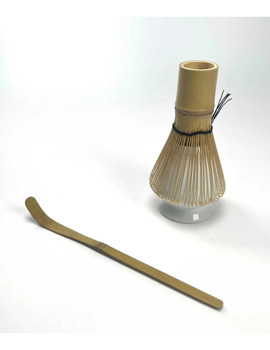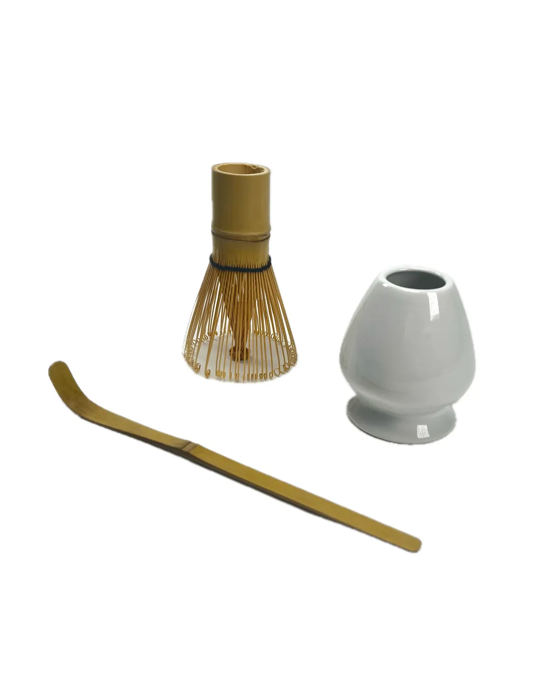 The Kaffia Matcha Preparation Pack contains the essential tools you need to traditionally prepare this delicious tea. In the pack you will find a Chasen bamboo whisk to thoroughly stir the tea, a whisk stand to store it properly and a bamboo spoon to help you measure out the right amount of Matcha tea. This set is ideal for Matcha tea lovers who want to enjoy its authentic taste and prepare it in the traditional way.