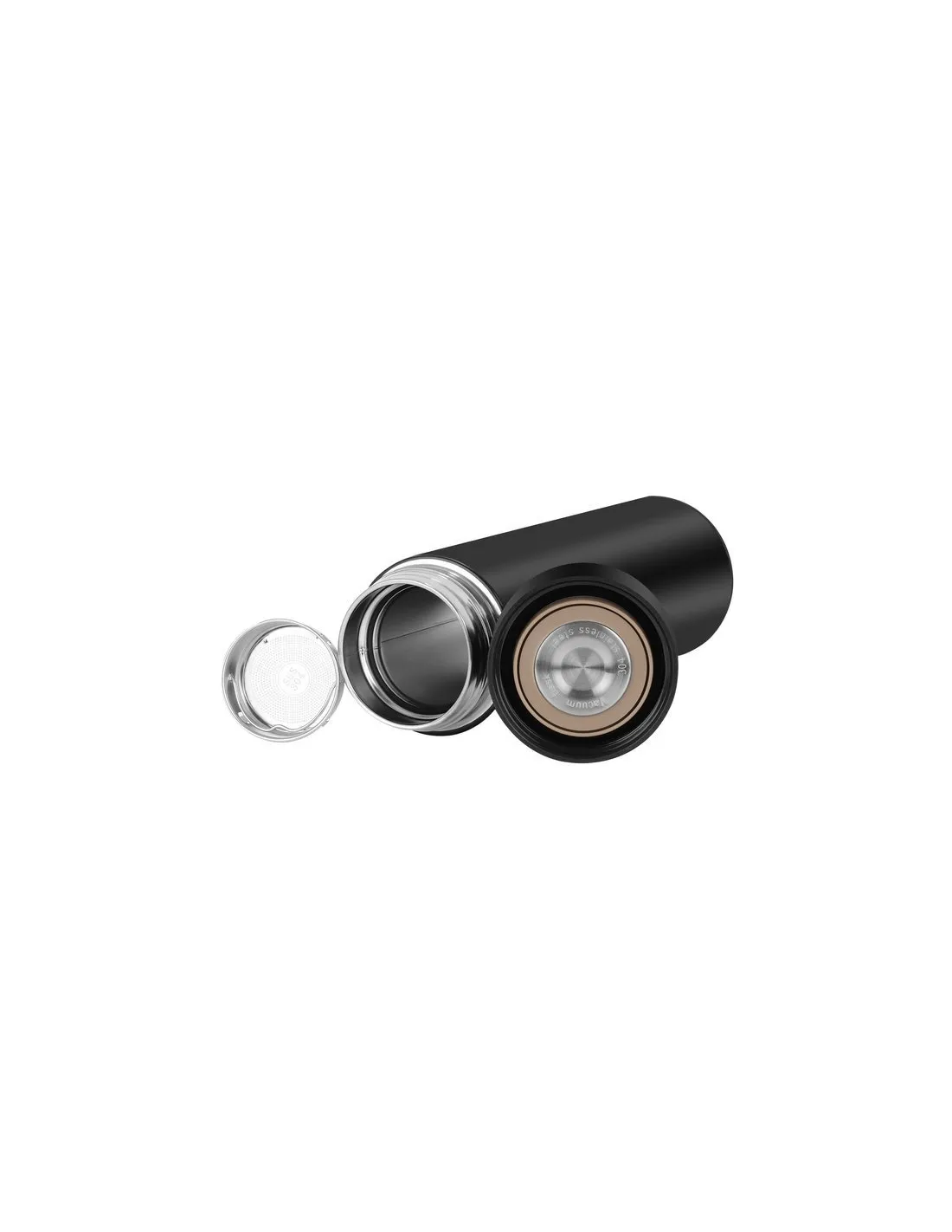 A beautiful and practical thermos that displays the temperature of your drink with one touch on the LCD display. The included strainer filters coffee or loose tea.