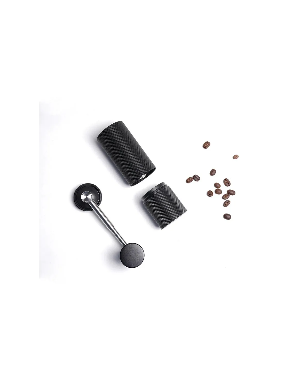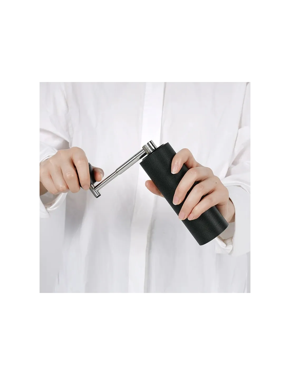 Thetextured surface ensures the grinder won't fall out of your hand and grinding will be comfortable. With a diameter of only approx. 5 cm, a height with handle of approx. 16 cm and a light weight, the Timemore grinder will meet the expectations of all travellers. The hexagonal end of the handle ensures comfortable grinding and easy application of the folding handle.
