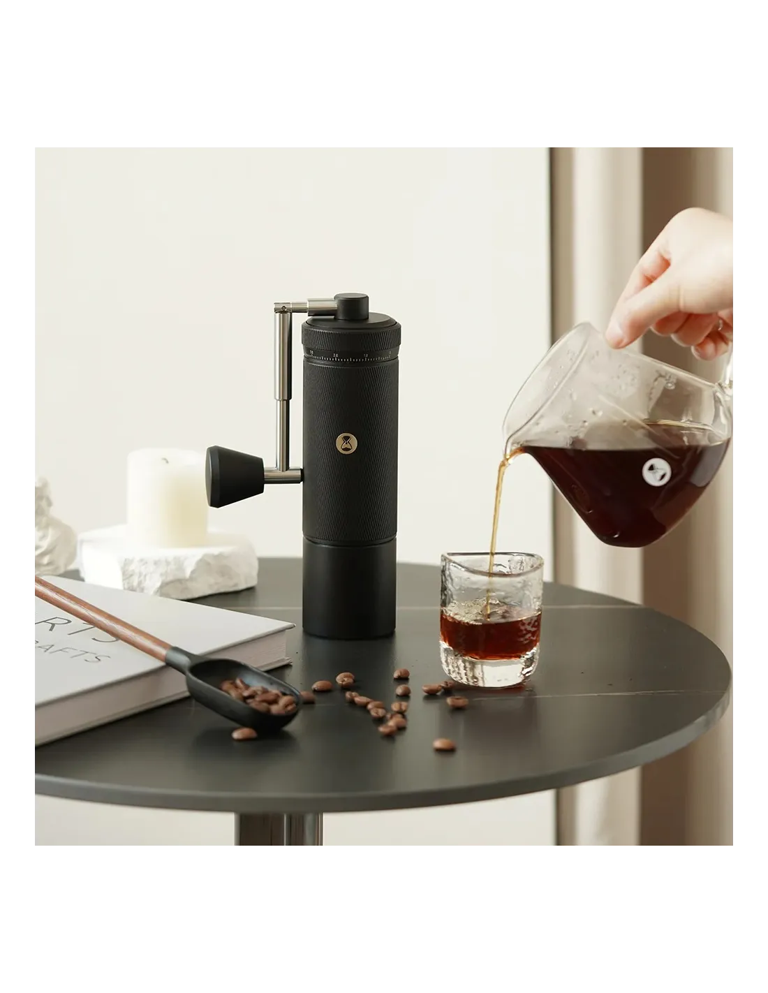The latest model (2024) of the Timemore Chestnut S3 hand grinder has an innovative feature, which is an external scale for adjusting the coarseness of the coffee grind in the style of a camera lens setting. This makes the adjustment smoother and more precise. The transition between the grades has a difference of 0.015 mm is very fine.