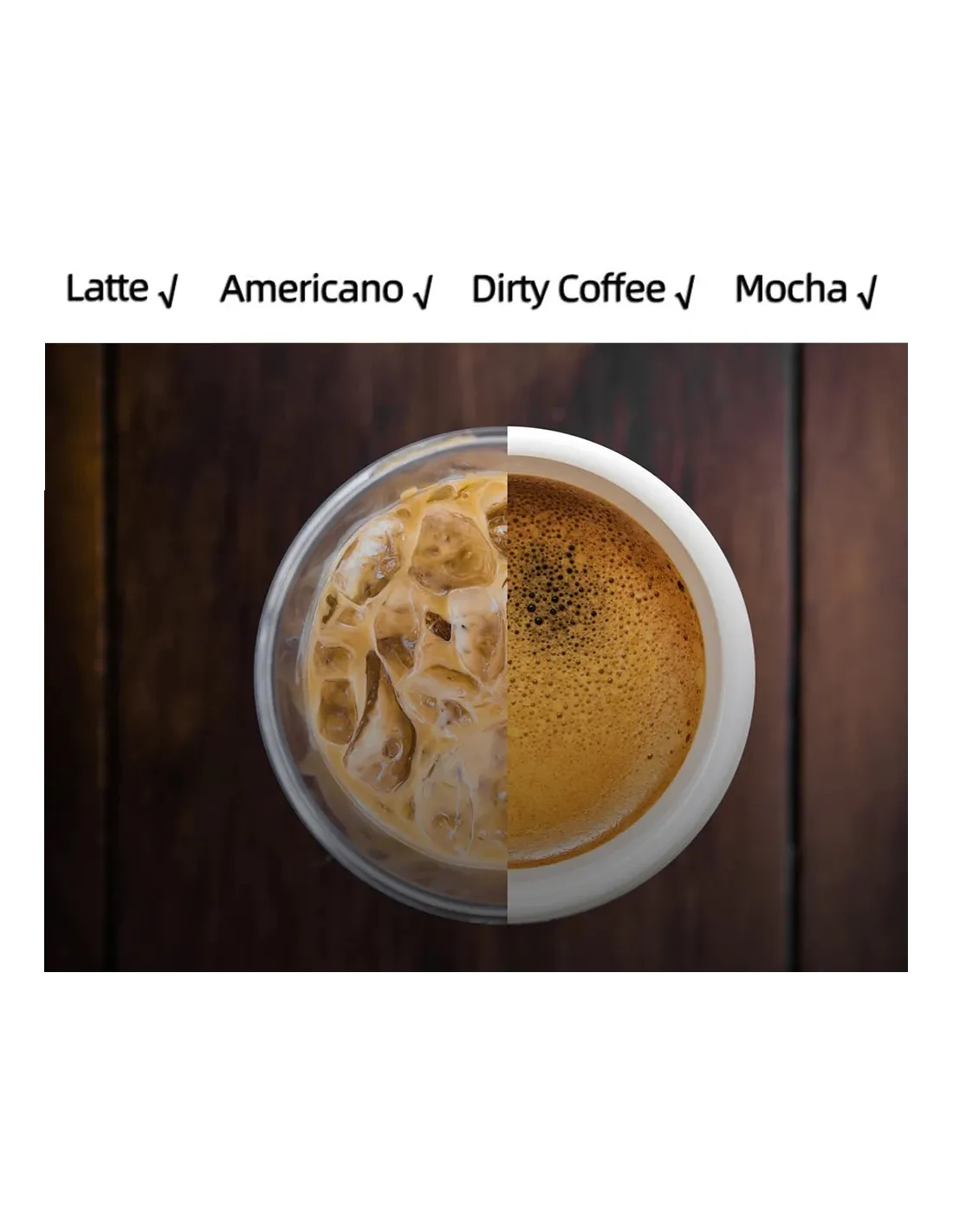 To make coffee you will need hot/cold water, ground coffee or a capsule and your dexterous hands. After pouring in the coffee or inserting the capsule, you pour in the water and close everything tightly. The preparation is manual. The hand pump is then used to create the necessary pressure to achieve a golden coffee extraction with a rich froth. It's up to you whether you choose an intense squeeze for a perfect espresso or opt for a slower flow for a rich americano.