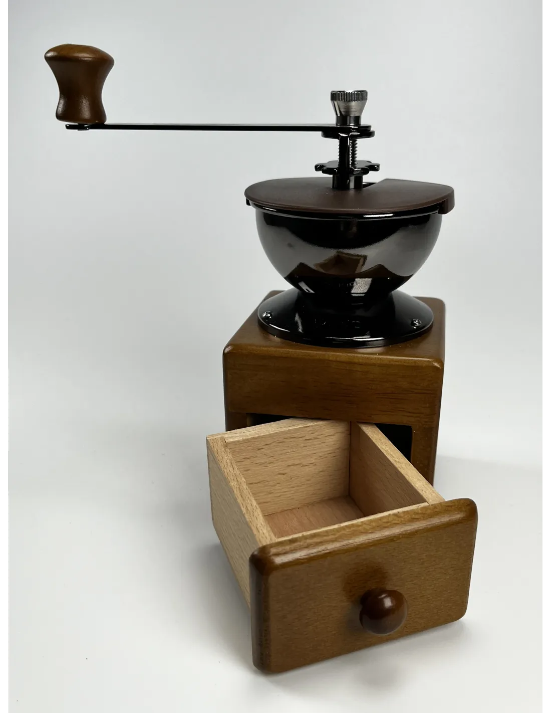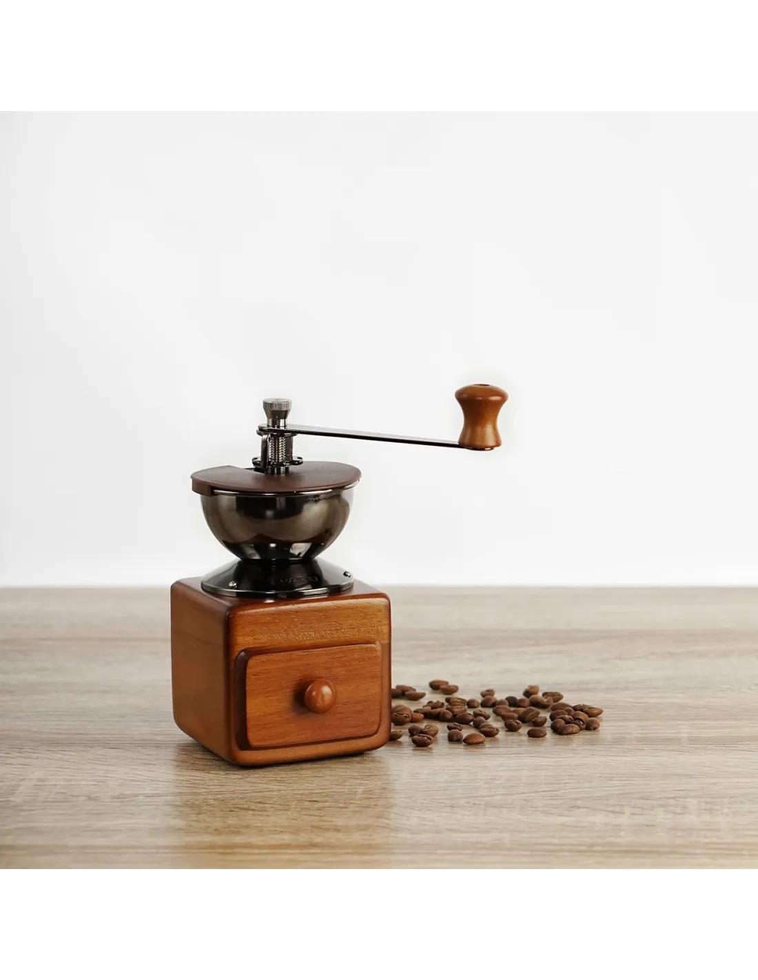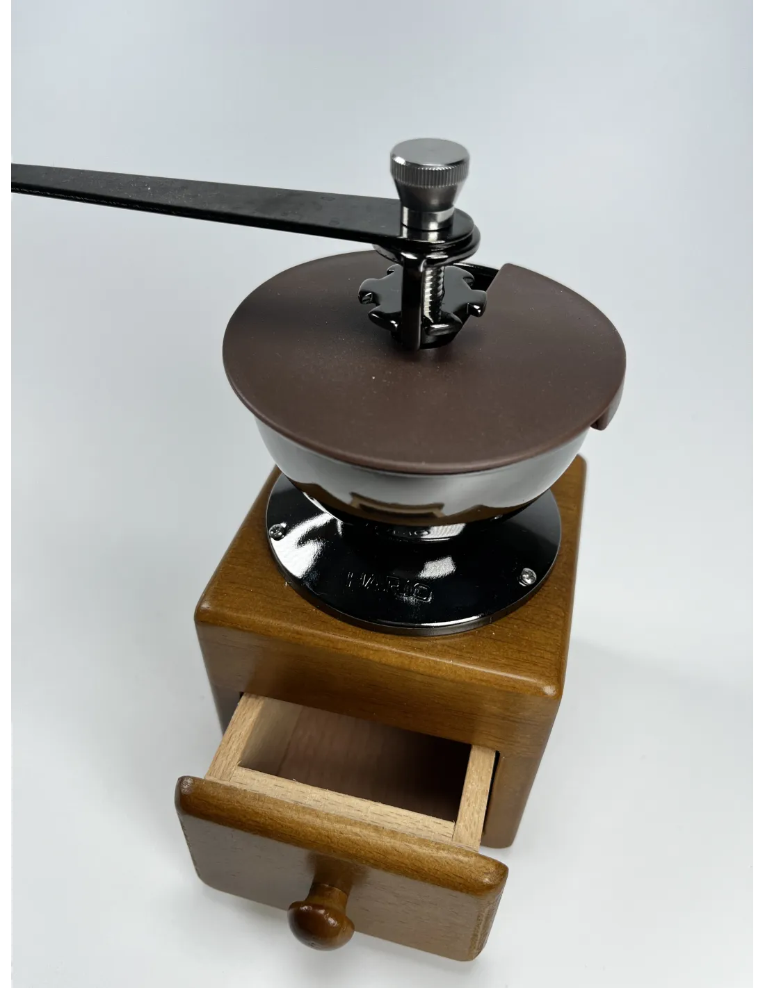 Młynek Hario MM-2 to idealne połączenie tradycyjnego stylu z elegancją charakterystyczną dla japońskiej marki Hario. Na pierwszy rzut oka spodoba się połączenie solidnego drewnianego korpusu, ciemnego zbiornika ze stali nierdzewnej oraz uchwytu, który jest połączeniem stali nierdzewnej i drewna.