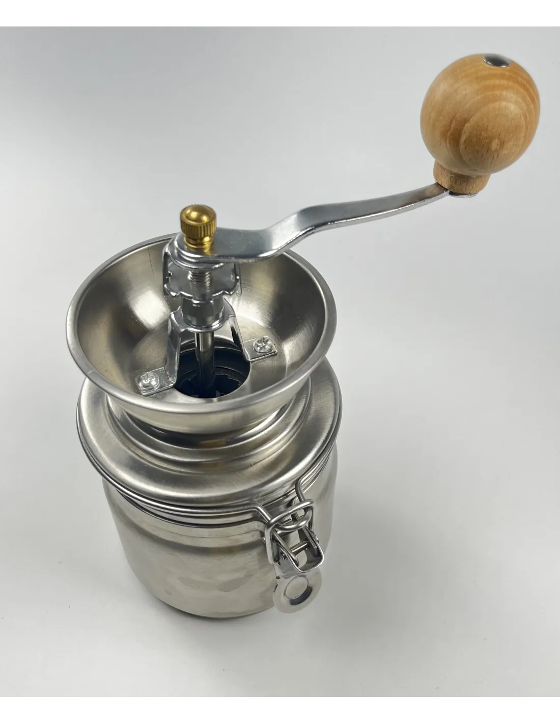Wykonanyw całości ze stali nierdzewnej młynek Kaffia Silver z ceramicznym mechanizmem mielącym, regulowaną grubością mielenia i dużym pojemnikiem na zmieloną kawę.