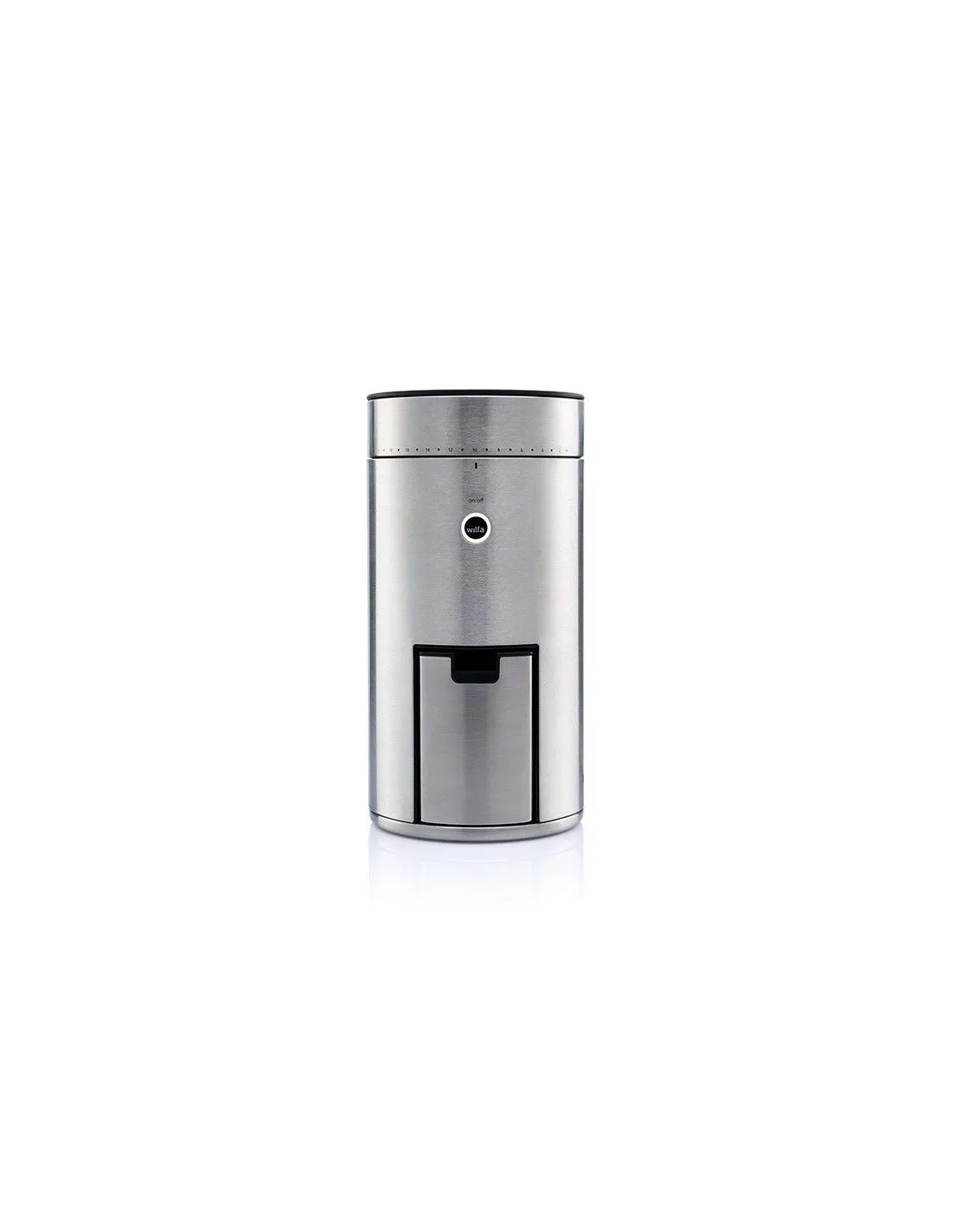 Elegancki elektryczny młynek do kawy Uniform WSFBS norweskiej marki Wilfa, który posiada płaskie kamienie o średnicy 58 mm. Zmieli kawę nawet do espresso.